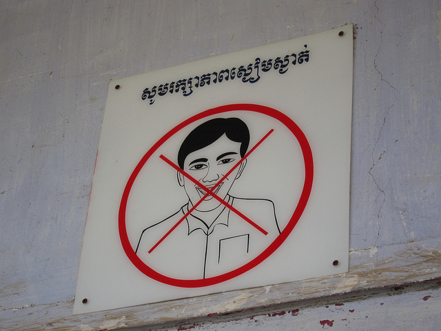 The photo below was one of the photographs on the display at the museum. It showed people observing a cabinet full of skulls of the victims excavated from the mass graves. You could see the sadness in the face of the lady in the middle — I wonder if she’s remembering anyone close to her who lost their lives in the hands of the Khmer Rouge.